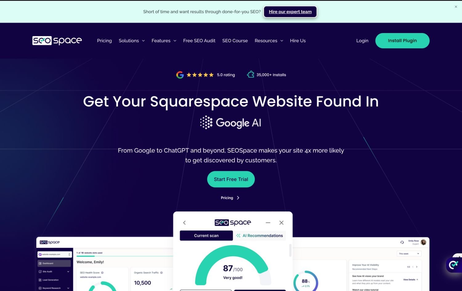 Just starting out on Squarespace: Make sure your built-in Squarespace SEO settings are fully filled in, connect Google Search Console, and run a free SEOSpace audit to see where you stand.